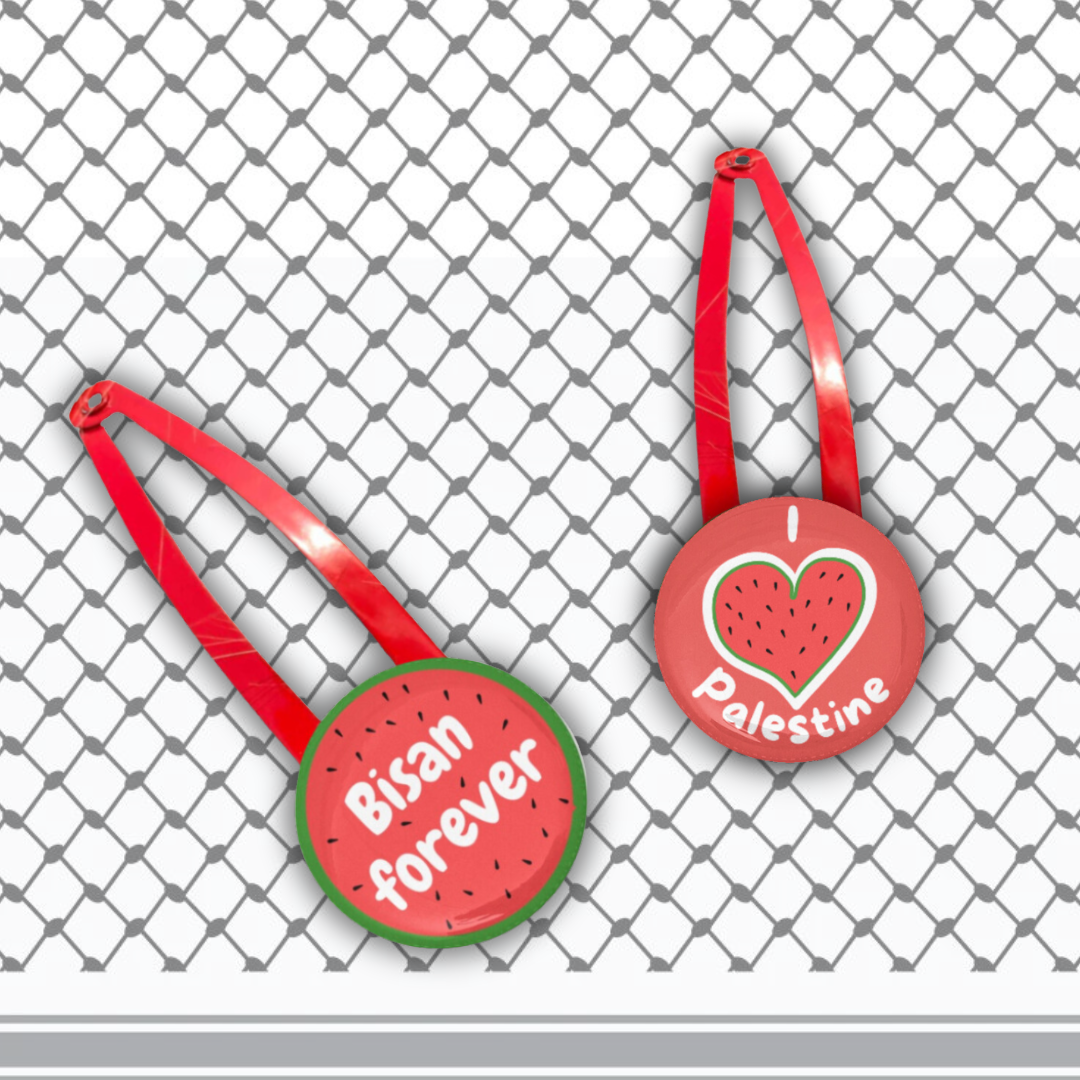 We wear these hair clips in honour of the children of Palestine. Proceeds go to Gaza Go Bragh