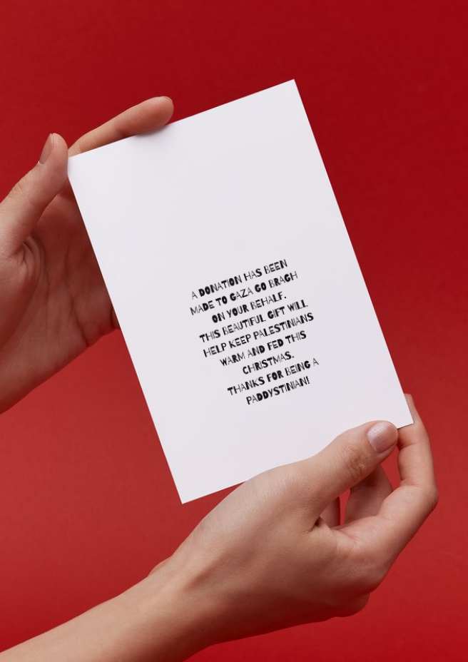 This digital, printable card is the perfect way to show your support while donating to the incredible Gaza Go Bragh. Upon purchase, you'll be directed to a link to download the card, ready to print and share with your favorite Paddystinian.