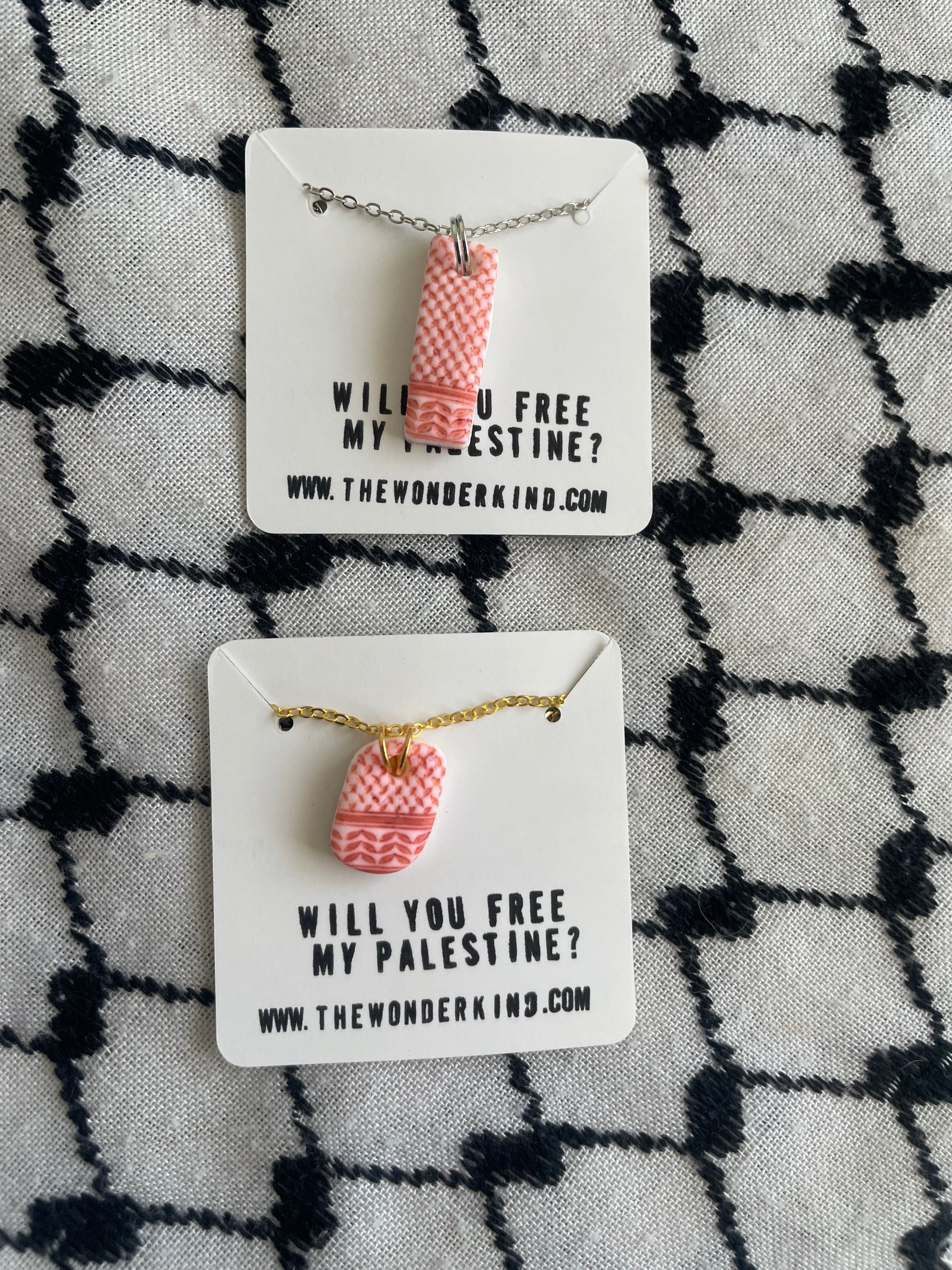 Handmade keffiyeh pendant in aid of a mother in Palestine