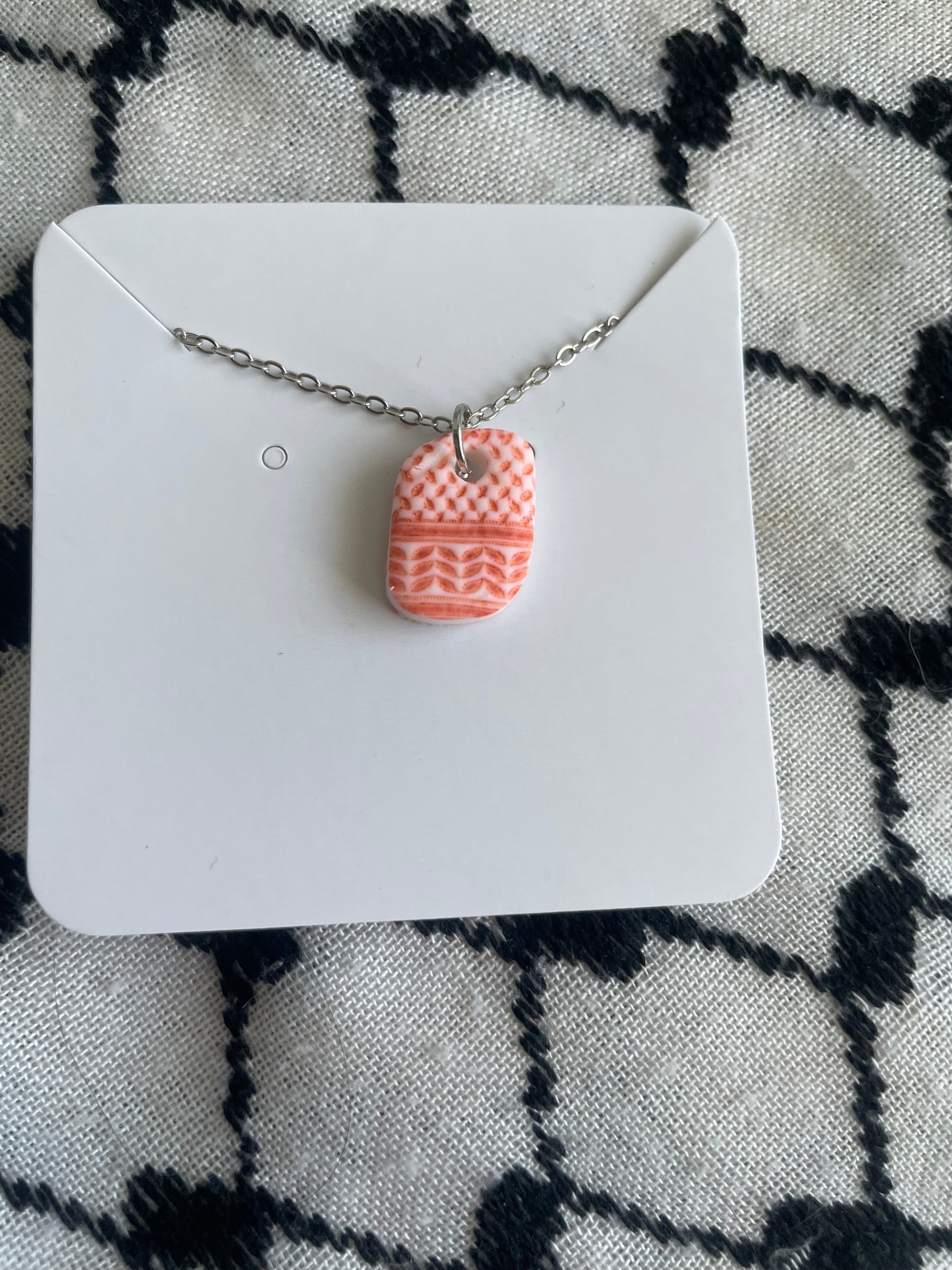 • Handmade polymer clay pendant, hand-stamped with keffiyeh print