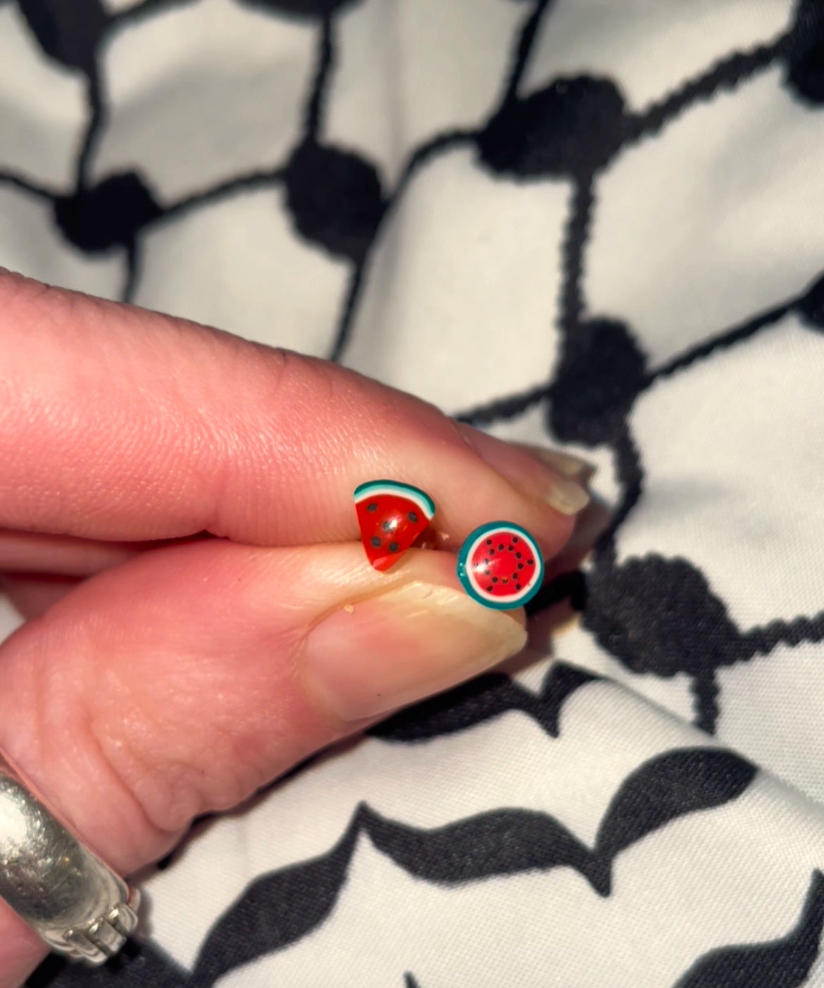 Alaa’s earrings - Watermelon studs in aid of Palestinian mother
